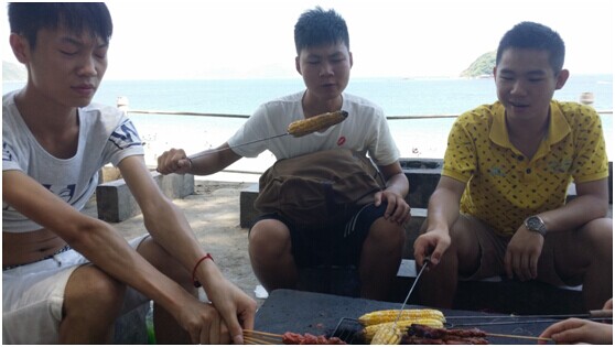 同學們在西沖海灘燒烤